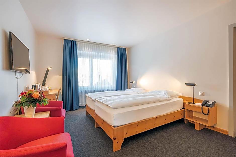 This room is equipped with wired internet access, TV, and a bathroom with hairdryer. Some units feature views of the surrounding mountains.